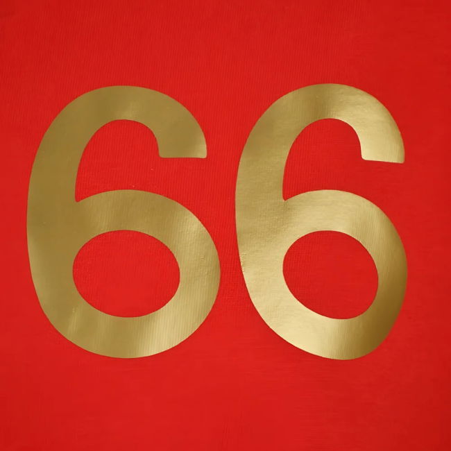 Crew neck. Relaxed fit with the number 66 heat sealed onto the right chest.