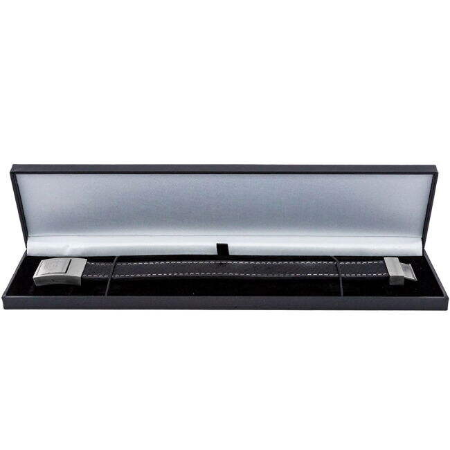 Black genuine leather stiched bracelet with a subtle crocodile print design